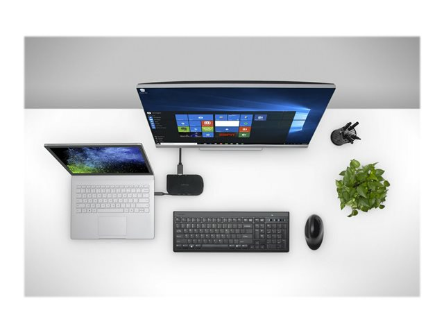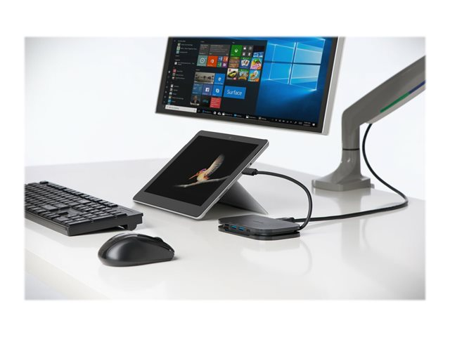 La station d'accueil SD1610P de Kensington a été conçue pour les appareils Microsoft Surface. Les utilisateurs peuvent ajouter à leur poste de travail mobile ou au bureau un écran VGA Full HD ou HDMI 4K et y connecter leurs accessoires USB préférés. Qu'elle soit installée dans un espace de travail temporaire ou une salle de conférence, la SD1610P assure l'énergie et la productivité des utilisateurs. Grâce à la technologie USB-C et à la transmission d'alimentation 3.0 (Power Delivery), les utilisateurs peuvent se connecter en toute confiance à leur appareil en comptant sur SD1610P pour étendre leur espace de travail, utiliser leurs accessoires préférés et alimenter leur appareil Surface en même temps*. *Chargeur USB-C 3 A/60 W (ou supérieur) requis (non fourni).