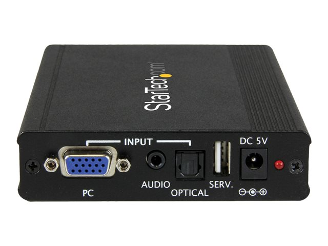 Le convertisseur et scaler est équipé d'entrées audio de 3,5 mm et optiques vous permettant aussi d'associer l'audio à la sortie HDMI. Le scaler crée un signal numérique aux résolutions élevées, ce qui est parfait pour mettre de l'ancien équipement vidéo VGA à niveau afin de le rendre compatible avec un téléviseur ou un projecteur HDMI plus récent.