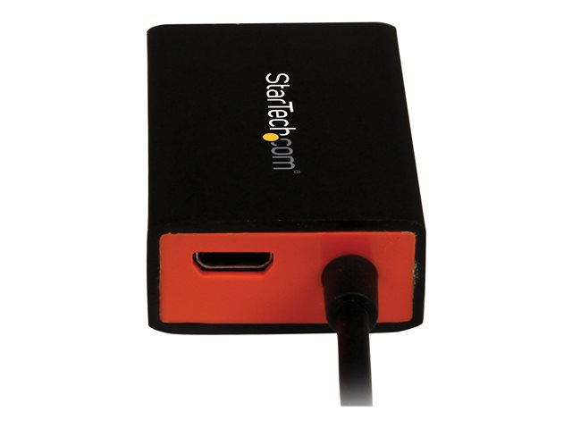 L'adaptateur Micro USB (SlimPort) vers VGA SLMPT2VGA vous permet de connecter votre ordinateur portable ou votre smartphone SlimPort/MyDP à une télévision, un écran ou un vidéoprojecteur VGA. Idéal pour étendre votre espace de travail ou afficher du contenu sur votre ordinateur portable HP Chromebook 11, sur votre smartphone LG Optimus G Pro ou G2 sur un plus grand écran, cet adaptateur offre un moyen simple d'augmenter votre productivité ou de partager votre écran lors de visionnage en groupe.