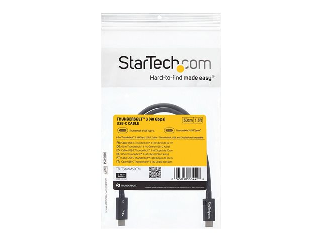 StarTech.com 2m (6.6ft) Thunderbolt 3 Cable, 20Gbps, 100W PD, 4K Video, Thunderbolt-Certified, Compatible w/ TB4/USB 3.2/DisplayPort - Câble Thunderbolt - 24 pin USB-C (M) pour 24 pin USB-C (M) - Thunderbolt 3 / USB / DisplayPort - 2 m - noir - pour P/N: CDP2HDUACP, CDP2HDUACPW, MST30C2DPPD TBLT3MM2M