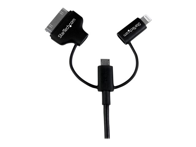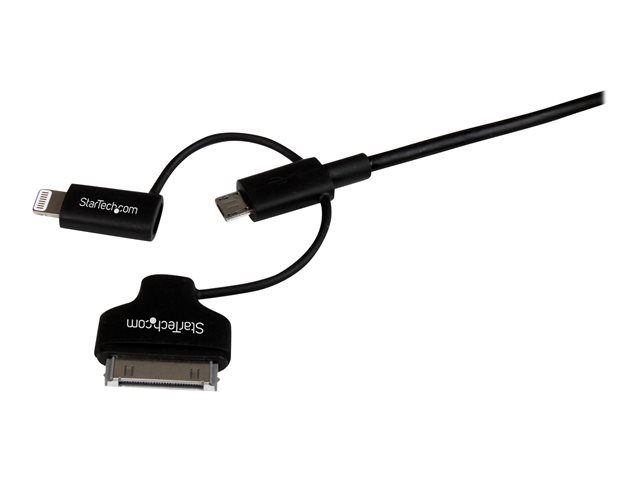 StarTech.com Câble combo USB vers Lightning / Dock 30 broches / Micro USB de 1 m - Noir (LTADUB1MB) - Câble de chargement / de données - Apple Dock, Micro-USB de type B, Lightning mâle pour USB mâle - 1 m - double blindage - noir - pour P/N: ST4CU424, ST4CU424EU, ST4CU424UK, ST8CU824