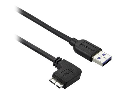 StarTech Câble Micro USB 3.0 slim - Cordon USB-A vers Micro-B à angle gauche de 50 cm - USB 3.1 Gen 1 (5 Gb/s) - M/M - Câble USB - Micro-USB de type B (M) pour USB type A (M) - USB 3.0 - 50 cm - connecteur à angle gauche, moulé - noir