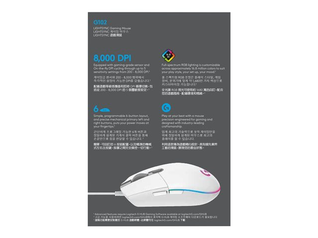 Souris de jeu Logitech G102 LIGHTSYNC - Souris - pour droitiers - optique - 6 boutons - filaire - USB - blanc