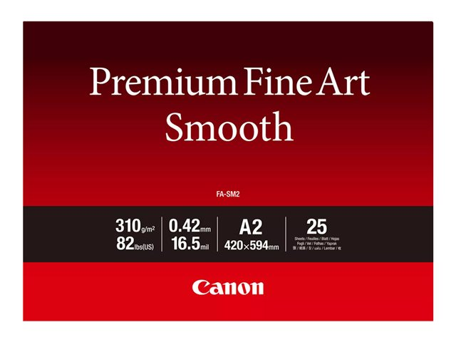 Canon Premium Fine Art FA-SM2 - Lisse - 16,5 millièmes de pouce - A2 (420 x 594 mm) - 310 g/m² - 82 lbs - 25 feuille(s) papier photo - pour imagePROGRAF PRO-1000