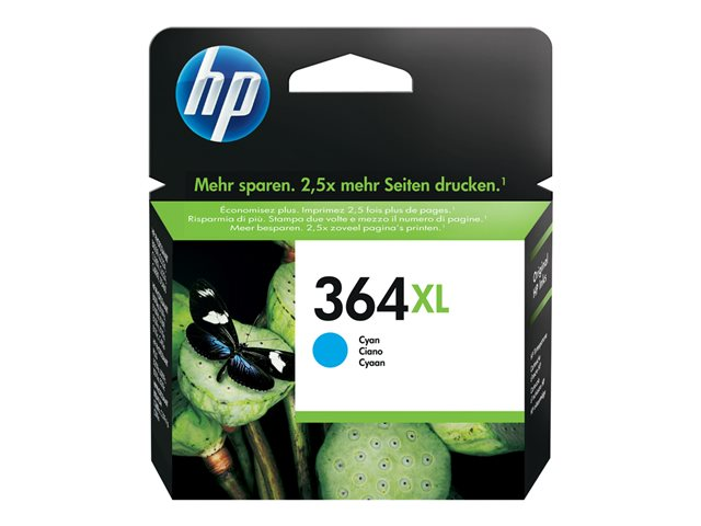 HP 364XL - 6 ml - à rendement élevé - cyan - original - cartouche d'encre - pour Deskjet 35XX; Photosmart 55XX, 55XX B111, 65XX, 7510 C311, 7520, Wireless B110 CB323EE#BA1