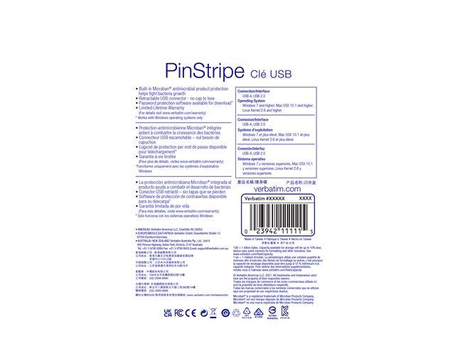 La clé USB Store 'n' Go PinStripe de Verbatim est rétractable, ce qui protège la connexion USB lorsqu'elle n'est pas utilisée, sans nécessiter de capuchon qui se perd facilement.