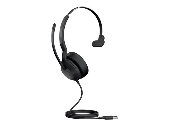 Jabra Evolve2 50 UC Mono - Micro-casque - sur-oreille - Bluetooth - filaire - Suppresseur de bruit actif - USB-A - noir - certifié Zoom, Certifié pour Microsoft Teams, Cisco Webex Certified, Certifié Alcatel-Lucent, Certifié Unify, Certifié Google Meet, Certifié Amazon Chime 25089-889-999