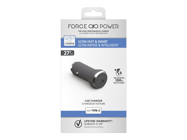 BIGBEN Connected Force Power - Adaptateur d'alimentation pour voiture - 27 Watt - Fast Charge, PD (24 pin USB-C) - gris FPCAC27W1USBCG