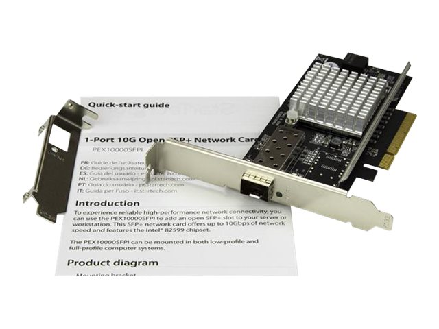 StarTech.com Carte réseau PCI Express à 1 port fibre optique 10 Gigabit Ethernet SFP+ ouvert - Chipset Intel - Adaptateur NIC PCIe - MM/SM - Adaptateur réseau - PCIe 2.0 x8 - 10GbE - 10GBase-LR, 10GBase-SR, 10GBase-LRM - noir - pour P/N: SFP10GBBXDST, SFP10GBBXUST, SFP10GBLRMST, SFP10GBLRST, SFP10GBSRST, SFP10GBZRST PEX10000SFPI