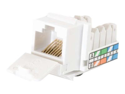 Conçue pour offrir des performances supérieures, cette prise Keystone fonctionnera avec des appliques et des boîtiers de surface C2G ou toute applique ou tableau de connexions Keystone multimédia standard et coudé. Disponible en 9 couleurs pour correspondre au logement ou permettre la désignation du port avec codage de couleur conforme aux exigences TIA-606. Chaque jack Keystone comprend 110 type IDC résiliation à dossier droit avec des bouchons de décharge de traction, et est livré en standard avec 50 µ pouces placage d'or sur les contacts du jack.